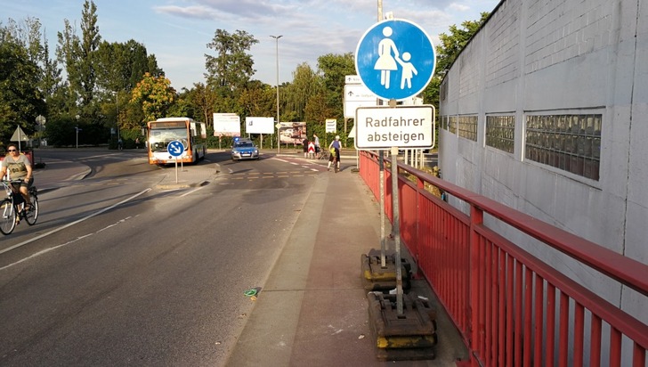 "Glück im Fehlverhalten" hatte am Dienstag (03.07.2018) gegen 19:40 Uhr ein 31-jähriger Radfahrer aus Oppau. Obwohl der Radweg der Buschwegbrücke in Richtung Melm wegen einer Baustelle seit Ferienbeginn gesperrt ist, befuhr er mit seinem Trekkingrad am Dienstagabend diesen Gehweg in Richtung Notwendestraße.