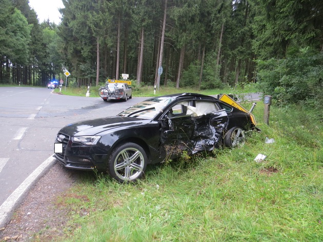 Am Dienstag, dem 28.07.2015, ereignete sich gegen 15.45 Uhr ein schwerer Verkehrsunfall im Kreuzungsbereich der L 17/L 20 am Forsthaus Brandscheid. Ersten Ermittlungen nach missachtete ein aus Richtung Brandscheid kommender Pkw Audi, besetzt mit einem Ehepaar aus Köln, die Vorfahrt eines aus Richtung Bleialf kommenden Pkw Mercedes, besetzt mit einem Paar aus Belgien. Bei dem Zusammenstoß der Fahrzeuge wurden alle Insassen schwer verletzt. Der entstandene Sachschaden wird auf ca. 30.000 Euro geschätzt. Da bei zwei der Verletzten zunächst Lebensgefahr bestand, wurde durch die Staatsanwaltschaft Trier zur Feststellung der Unfallursache die Erstellung eines Verkehrsunfallgutachtens angeordnet. Die Verletzten wurden durch das DRK und einen Rettungshubschrauber in Krankenhäuser der Region verbracht. Die Straße war im Bereich der Unfallstelle während der Maßnahmen voll gesperrt. Durch die Straßenmeisterei Prüm war eine Umleitung eingerichtet worden. Die Vollsperrung der Unfallstelle dauerte bis 18.55 Uhr an. Im Einsatz waren überdies die Feuerwehren aus Brandscheid und Bleialf.