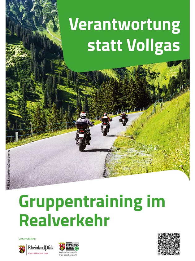 Die Motorradsaison ist noch nicht beendet. Deswegen führt die Polizeidirektion Trier in Zusammenarbeit mit der Kreisverkehrswacht Trier-Saarburg e.V. unter dem Motto "Verantwortung statt Vollgas!" ihre Präventionskampagne für Motorradfahrer weiter.