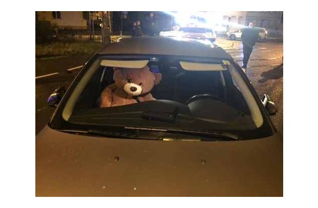 Nicht schlecht staunten die Beamten der Polizeiinspektion Trier als sie im Fahrzeug nachschauten, ob sich im Inneren weitere Personen befanden, die eventuell verletzt sein könnten. Glücklicherweise befanden sich keine Personen im Fahrzeug, jedoch saß auf dem Beifahrersitz ein lebensgroßer Teddybär. Der Bär konnte leider zur Unfallursache keinerlei Angaben machen, war jedoch während des Unfalles ordnungsgemäß angeschnallt.