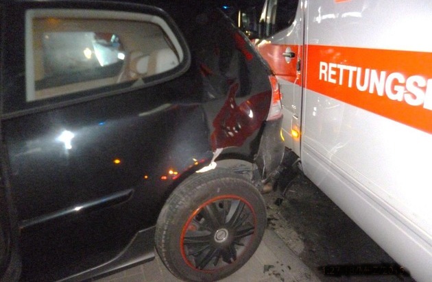 Ein in diesem Zusammenhang angeforderter Rettungswagen gegen 23.20 Uhr bei der Anfahrt in der Ortslage Konz-Könen, als er einen vorausfahrenden VW Golf überholen wollte, da der Golf unvermittelt nach links in die Fahrspur des überholenden Rettungswagen zog. Hierbei kam es zum Zusammenstoß der beiden Fahrzeuge, wobei der Fahrer des Golf leicht verletzt wurde. Der 34-jährige Fahrer des VW Golf stand unter Alkoholeinwirkung weswegen eine Blutentnahme angeordnet wurde. Beide Fahrzeug wurden stark beschädigt und waren nicht mehr fahrbereit. Sachschaden ca. 30.000,-Euro