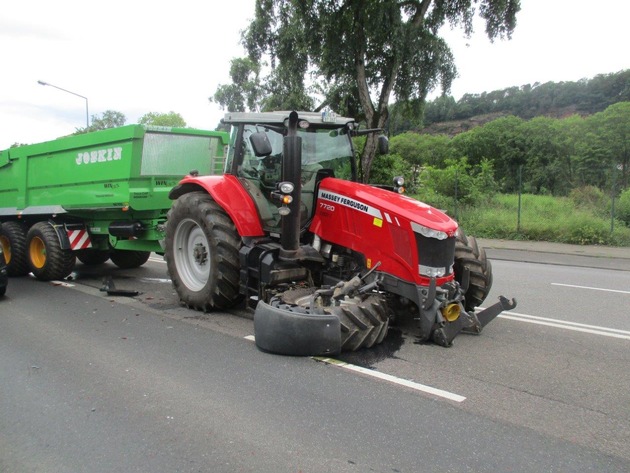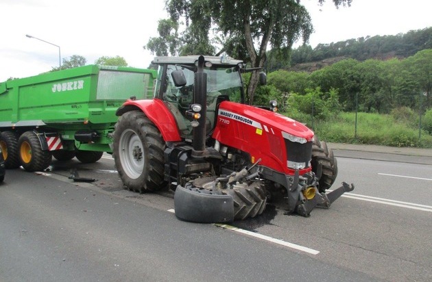 POL-PPTR: Verkehrsunfall mit Traktor brachte Verkehr zum Erliegen