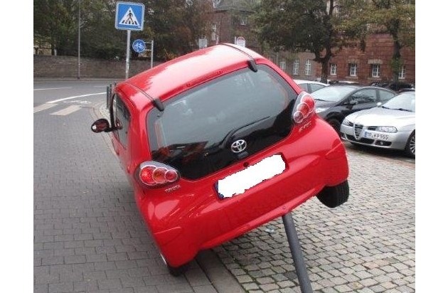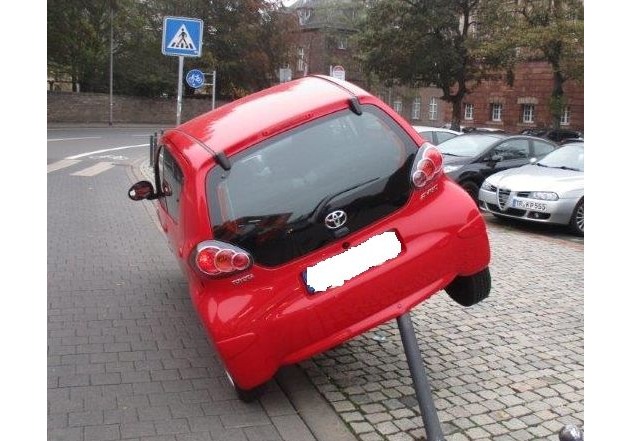 Glück im Unglück hatte eine PKW-Fahrerin heute Vormittag gegen 09.25 Uhr, als sie so unglücklich mit Metallpollern kollidierte, dass sie ihr Fahrzeug "aufbockte".