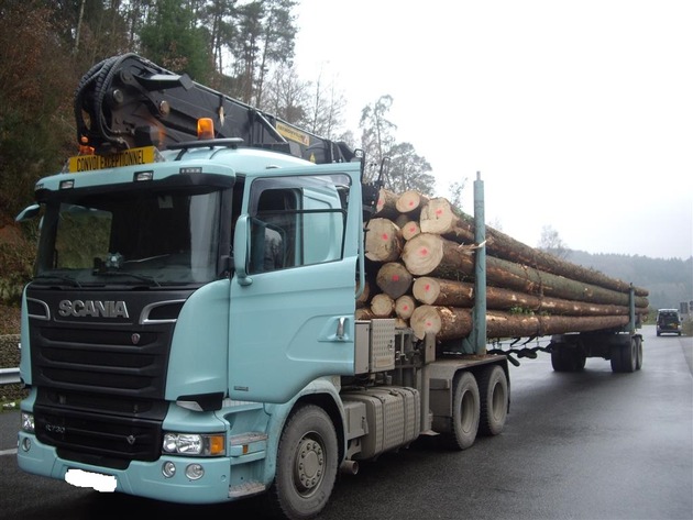 POL-PPTR: Holztransporter deutlich überladen - Polizei stoppt Langholztransporter mit 55 Tonnen Gesamtgewicht