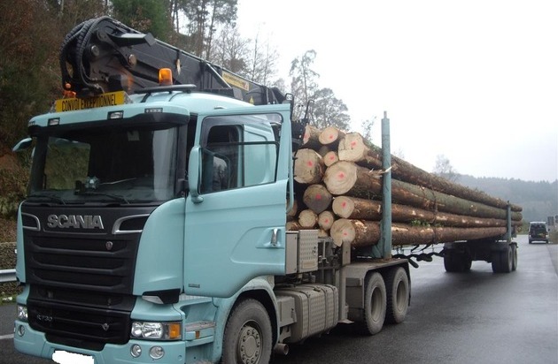 POL-PPTR: Holztransporter deutlich überladen - Polizei stoppt Langholztransporter mit 55 Tonnen Gesamtgewicht