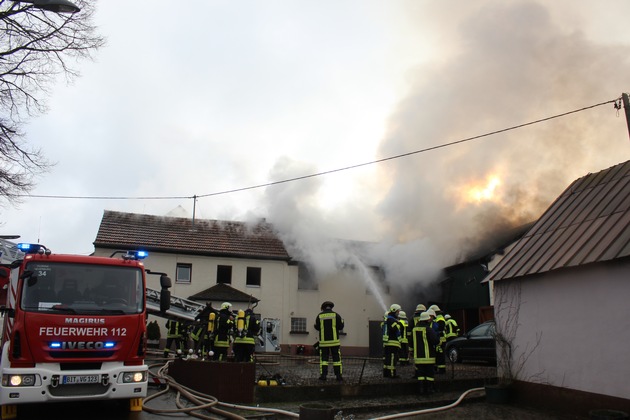 Am Donnerstag, 11. Januar 2018, kam es im Oberpierscheider Ortsteil Philippsweiler zum Brand eines Einfamilienhauses. Aus bislang noch unklarer Ursache brach im ehemals landwirtschaftlich genutzten Nebengebäude ein Brand aus. Die Flammen griffen in der Folge auch auf das Dachgestühl des Haupthauses über. Eine zum Zeitpunkt des Brandausbruchs im Haus weilende Bewohnerin konnte das Haus selbständig und unverletzt verlassen. Durch das schnelle Eingreifen der Feuerwehren aus Oberpierscheid, Neuerburg, Waxweiler, Lünebach, Krautscheid, Arzfeld und Plütscheid, welche mit rund 50 Mann und mehreren Fahrzeugen vor Ort waren, konnte ein Vollbrand des Einfamilienhauses abgewendet und der Schaden begrenzt werden. Die Höhe des Sachschadens ist noch unklar. Der Kriminaldienst der Polizeiinspektion Prüm hat die Ermittlungen zur Brandursache aufgenommen.