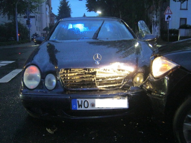 In der Ludwigstraße kam es am 16.09.2015 zu einem Verkehrsunfall, als ein BMW-Fahrer um 06.44 Uhr beim Abbiegen in die Hagenstraße einen Mercedes im Gegenverkehr übersah. Hierbei verletzte sich der 33-jährige Fahrer im abbiegenden BMW und musste ärztlich versorgt werden. Beide Autos wurden abgeschleppt. Bei der Unfallaufnahme mussten die Beamten dann feststellen, dass der 28-jährige Mercedesfahrer keinen Führschein hatte und die Kennzeichen am Auto gar nicht zu diesem gehören. Der Sachschaden beläuft sich auf ca. 17.000,- Euro.
