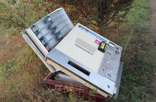 Mitten auf einem Feldweg in der Nähe der Straße "Der alte Postweg" fand eine Spaziergängerin am frühen Dienstagmorgen einen Zigarettenautomaten. Sie verständigte die Polizei und führte die Beamten zum Fundort. Wie sich herausstellte, wurde der Automat in der Nacht entwendet. Unbekannte hatten diesen in der Gernotstraße demontiert, ins freie Feld verbracht und dort in Ruhe aufgebrochen. Der gesamte Inhalte, Zigaretten und Bargeld, wurden entwendet und das leere Gehäuse zurückgelassen. Hinweise in dieser Sache nimmt die Polizei Worms unter der Rufnummer 06241-8520 entgegen.