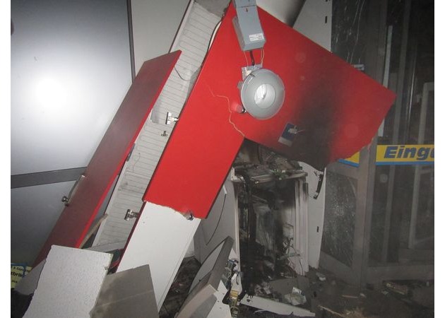Die Polizei Worms wurde am frühen Donnerstagmorgen, gegen kurz vor halb vier, über eine Alarmauslösung an einem Geldautomaten informiert. Vor Ort in Monsheim fanden die Beamten ein Bild der Verwüstung vor. Der Vorraum eines Supermarktes, in dem der Automat platziert war, wurde völlig zerstört. Die Scheiben waren eingeschlagen und die komplette Decke hing herunter. Als die Polizisten den Raum betreten wollten, fanden sie den Geldautomaten in Einzelteilen verstreut vor. Der Rest des Automaten stand in Flammen, konnte aber durch Kräfte der Feuerwehr gelöscht werden. Nach ersten Erkenntnissen wird davon ausgegangen, dass unbekannte Täter in den Markt eingebrochen sind und dann den Automaten auf noch unbekannte Weise gesprengt haben. Ob das darin befindliche Geld entwendet wurde, steht noch nicht fest. Die Höhe des Sachschadens dürfte nach ersten Schätzungen mehrere zehntausend Euro betragen. Hinweise nimmt die Polizei Worms unter der Rufnummer 06241-8520 entgegen.
