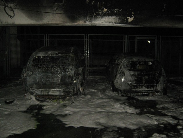 POL-PDWO: Feuer im Parkhaus - Zwei Autos brennen aus