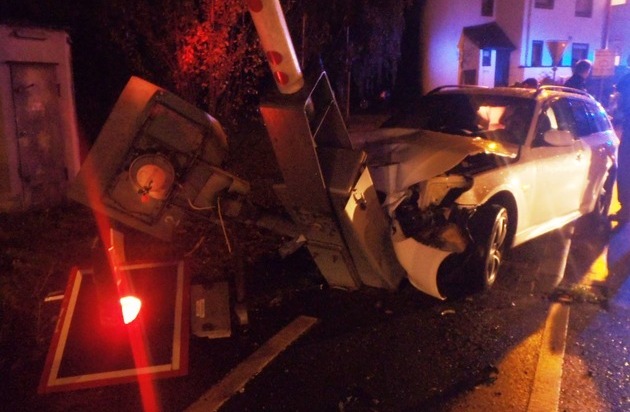 Gegen 20:00 Uhr befuhr am Samstag, 22.10.2016, ein 39jähriger Pkw-Fahrer die Alzeyer Straße (B271) in Flörsheim-Dalsheim aus Richtung Oberflörsheim kommend in Richtung Monsheim. In der Linkskurve am dortigen Bahnübergang kam der Pkw auf regennasser Fahrbahn nach rechts ab und kollidierte mit der Schrankenanlage. Unfallursache dürfte überhöhte Geschwindigkeit sowie die erhebliche Alkoholisierung des Fahrers gewesen sein. Dem Fahrer wurde eine Blutprobe entnommen, sein Führerschein wurde sichergestellt. An Pkw und Schrankenanlage entstand Totalschaden in Höhe von ca. 30.000,- Euro.