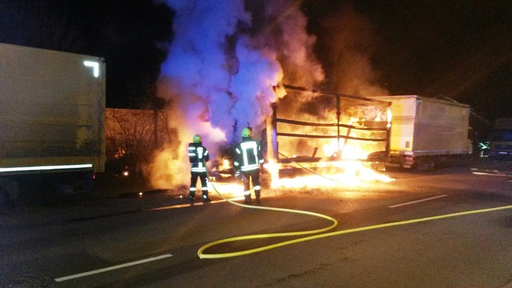 Durch mehrere Mitteiler wird gegen 22:20 Uhr der Brand eines LKW in der Oberrheinstraße in Worms gemeldet. Bei Eintreffen der eingesetzten Streifenbeamten steht der ordnungsgemäß geparkte LKW bereits in Vollbrand und wird in der Folge durch die Feuerwehren aus Worms und Worms-Rheindürkheim gelöscht. Auch die vor und hinter dem in Längsaufstellung geparkten LKW stehenden Fahrzeuge, sowie ein angrenzender Zaun werden durch die entstandene Hitze leicht beschädigt. Die Brandursache ist bisher ungeklärt. Der Schaden wird durch die eingesetzten Polizeibeamten auf ca. 7000 EUR geschätzt.