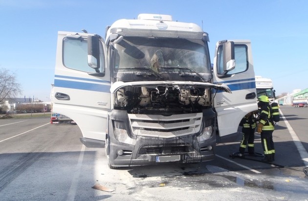 Ein technischer Defekt dürfte die Ursache eines Brandes auf dem Parkplatz vor dem Gelände der Firma Grace an der B9 gewesen sein. Ein LKW-Fahrer hatte sein Sattelzug am Montag, gegen 14:00 Uhr, abgestellt und sich an die Pforte zum Werkschutz begeben, als plötzlich Flammen aus der Zugmaschine schlugen. Mitarbeitern des Werkschutzes und der Feuerwehr Worms gelang es den Brand zu löschen. Der Sachschaden wird auf etwa 10.000 Euro geschätzt. Der LKW war nicht mehr fahrbereit. Aufgrund der Gesamtumstände geht die Polizei definitiv von einem technischen Defekt aus.