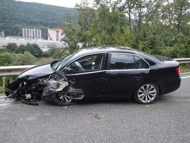 Am Samstag, den 12.09.2015 gegen 07:10 Uhr befuhr ein mit vier Männern besetzter PKW die Umgehungsstraße Kirn in Richtung Idar-Oberstein. Circa 150 Meter vor der letzten Ausfahrt Kirn kam der PKW aus bislang nicht geklärter Ursache nach links von der Fahrbahn ab und prallte dort auf die Ecke einer Stützmauer. Der im Frontbereich stark beschädigte PKW kam einige Meter weiter auf der Gegenfahrspur zum Stillstand. Die vier Insassen im Alter von 23 bis 26 Jahren wurden in Krankenhäuser eingeliefert.
