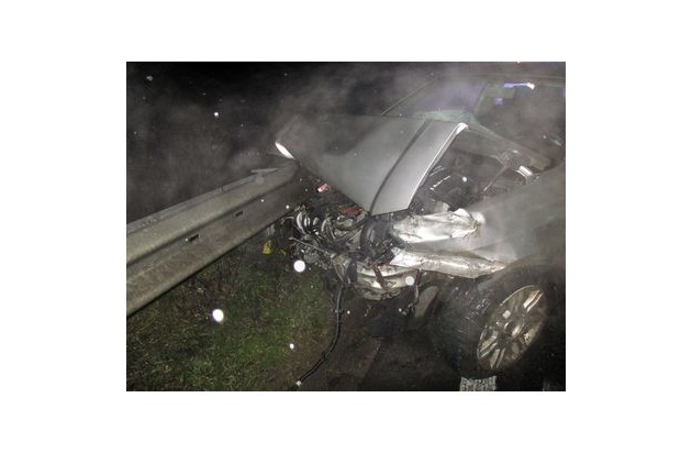 Um 06:35 Uhr kam ein 23-jähriger Pkw-Fahrer an der gleichen Unfallörtlichkeit ebenfalls in Schleudern. Er kollidierte zunächst mit der rechten, in Folge mit der linken Leitplanke und kam schließlich erneut in der rechten Leitplanke zum Stillstand. Der Fahrer wurde dabei offensichtlich leicht verletzt. Das nicht mehr fahrbereite Fahrzeug musste abgeschleppt werden. Der Schaden wird auf zirka 13.000,00 Euro geschätzt.