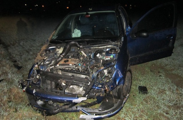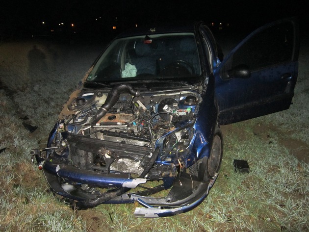 Am 27.12.2015 fuhr um 19.00 Uhr ein Pkw-Fahrer auf der Kreisstraße 78 von Lettweiler nach Odernheim. Der Pkw-Fahrer geriet auf gerader Strecke aufgrund nicht angepasster Geschwindigkeit nach rechts auf den Grünstreifen. Dort prallte er zunächst gegen einen Telefonmasten. Durch den starken Aufprall überschlug sich der Pkw und blieb auf der rechten Seite im Feld liegen. Als der Fahrer und seine 17-jährige Beifahrerin aus dem Fahrzeug ausstiegen, kippte dieses wieder auf die Räder. Die beiden Insassen wurden durch den Überschlag leicht verletzt und in einem Krankenhaus behandelt. Das total beschädigte Fahrzeug musste geborgen werden. Gegen den 18-jährigen Fahranfänger wurde ein Ermittlungsverfahren wegen fahrlässiger Körperverletzung eingeleitet.