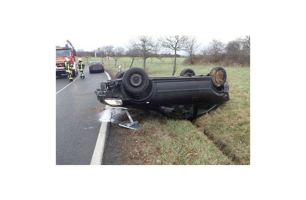 Am 11.12.2016 kam es um 12:30 Uhr auf der Kreisstraße 5 zwischen Oberhausen und Hennweiler zu einem Verkehrsunfall, als der Fahrer eines Opel Astra in einer langgezogenen Rechtskurve von der Fahrbahn abkam. Der Astra geriet in den tiefen Straßengraben, überschlug sich und blieb auf dem Dach liegen. Der 19-jährige Fahranfänger wurde nur leicht verletzt und konnte sich selbst aus dem Fahrzeug befreien. Der total beschädigte Astra musste geborgen werden.