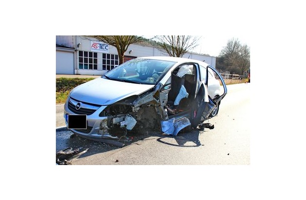 Am 16.03.2017 fuhr die Fahrerin eines Opel Astra um 13:45 Uhr auf der Bundesstraße 41 in Richtung Idar-Oberstein. Im Bereich des Industriegebiets Allweiden stieß sie aus bisher ungeklärten Gründen mit einem entgegenkommenden Pkw-Gespann zusammen. Der Aufprall war so stark, dass der voll beladene Anhänger des Gespanns auseinanderriss. Die Kiesladung wurde auf der Bundesstraße verteilt. Der Opel Astra blieb total beschädigt auf der Fahrbahn liegen. Die 56-jährige Fahrerin wurde durch den Aufprall leicht verletzt und musste vom Rettungsdienst in das Krankenhaus verbracht werden. Ein dreijähriges Kind, welches sich ebenfalls im Fahrzeug befand und im Krankenhaus untersucht wurde, blieb unverletzt. Wegen der Bergungs- und Räumungsarbeiten war die Bundesstraße 41 für 90 Minuten voll gesperrt. Im Bereich von Kirn kam es daher zu erheblichen Verkehrsbehinderungen.