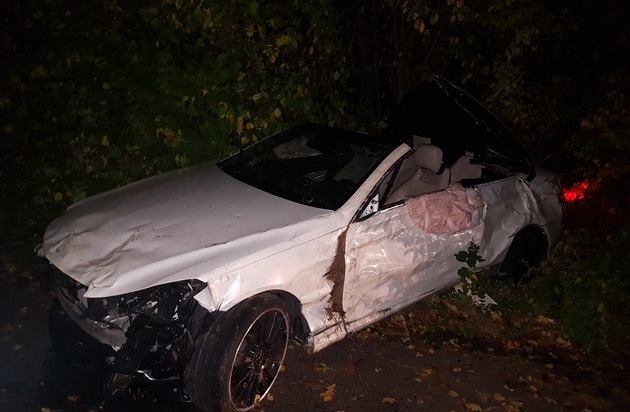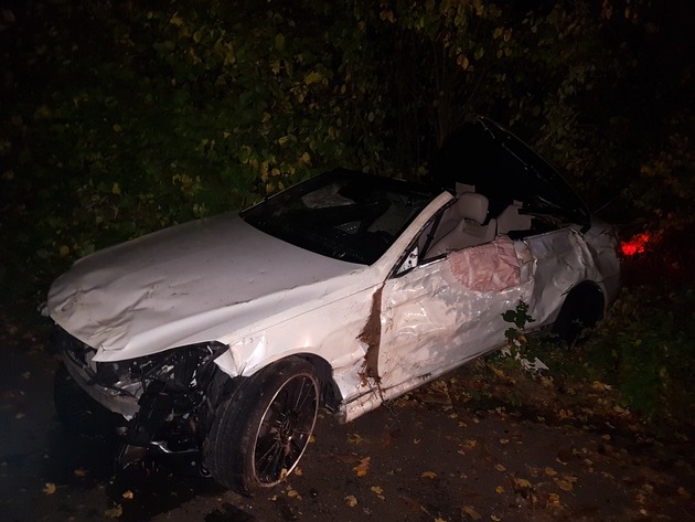 Ein 32 jähriger Autofahrer befuhr am 23.10.17 gegen 02:55 Uhr mit seinem PKW die B48, aus Richtung Bad Kreuznach kommend, in Richtung Bretzenheim. Kurz vor dem Kreisverkehr am Mitfahrerparkplatz an der B41 kam er aufgrund nicht angepasster Geschwindigkeit nach rechts von der Fahrbahn ab. Hierbei fuhr er auf eine Betonbegrenzung am Fahrbahnrand, hob ab, streifte mehrere Bäume, überschlug sich und kam anschließend ca. 58 Meter weiter auf dem parallel verlaufenden Feldweg mit seinem PKW zum Stehen. Bei dem Verkehrsunfall wurde der Fahrer leicht verletzt. An dem PKW entstand ein Totalschaden. Das Fahrzeug musste von einem Abschleppdienst geborgen werden.