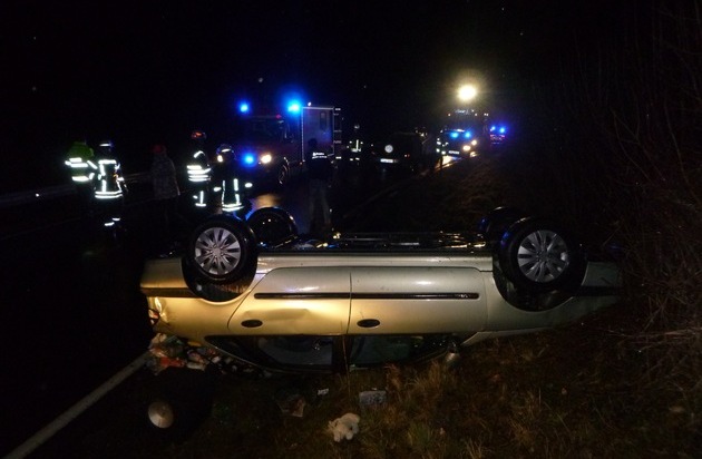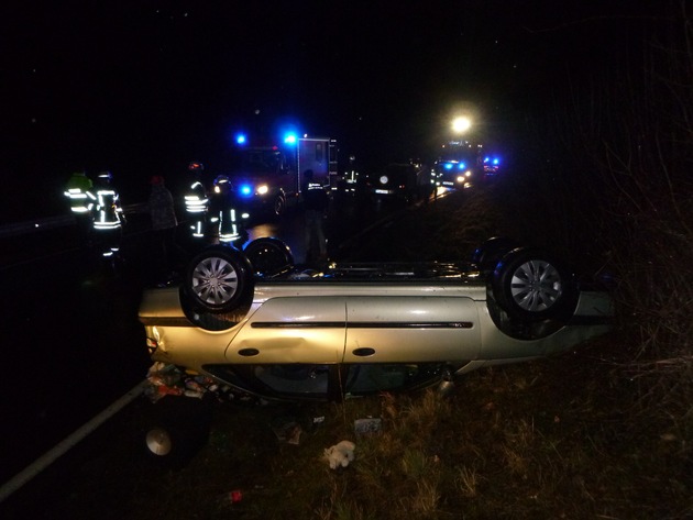 Am 08.03.2018 fuhr die Fahrerin eines Renault Laguna um 19.00 Uhr auf der Landesstraße 182 von Heimweiler in Richtung Becherbach. In dem Fahrzeug befand sich noch die zwei-jährige Tochter der Frau. Diese war in einem Kindersitz untergebracht. In einer leichten Rechtskurve verlor die Fahrerin die Kontrolle über ihr Fahrzeug und geriet nach links von der Fahrbahn ab. Der Renault fuhr ungebremst in die Böschung und überschlug sich dort. Danach blieb das Fahrzeug auf dem Dach liegen. Die hochschwangere Frau und ihre zweijährige Tochter konnten von einem Ersthelfer aus ihrem Fahrzeug befreit werden. Offensichtlich erlitten beide keine sichtbaren Verletzungen. Sie wurden jedoch aufgrund der Schockeinwirkung von einem Rettungswagen in das Krankenhaus nach Idar-Oberstein verbracht. Die Unfallverursacherin gab an, dass ihr kurz vor dem Unfall übel geworden sei. Nach Hinweis der Ärzte sei das ungeborene Kind unversehrt geblieben.