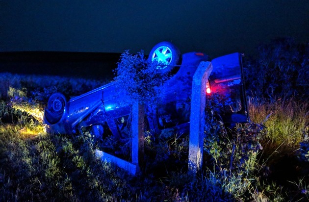 POL-PDKH: 21-Jähriger überschlug sich mit seinem Pkw - Geschwindigkeit und Cannabis als Unfallursache