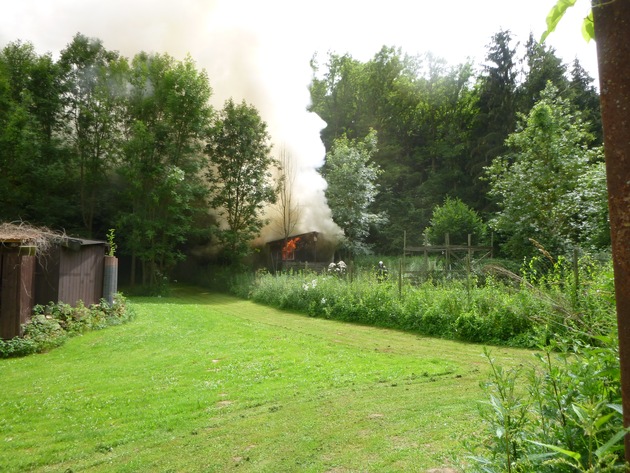 Am Freitag, den 15.06.2018, um 15.35 Uhr, wurden Polizei und Feuerwehr über eine brennende Gartenhütte in Rüdesheim informiert. Auf einem privaten Gartengelände stand beim Eintreffen der Einsatzkräfte die Laube komplett in Brand. Die Hütte brannte vollständig aus, die Ermittlungen zur Brandursache wurden von der Polizei aufgenommen. Zu Schäden außerhalb der Gartenhütte ist es nicht gekommen.