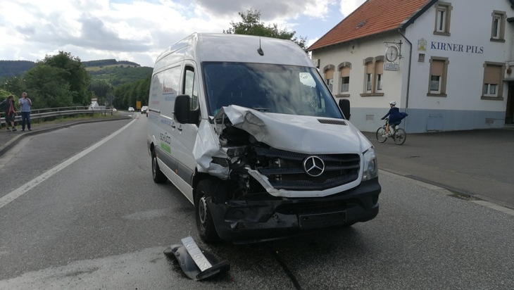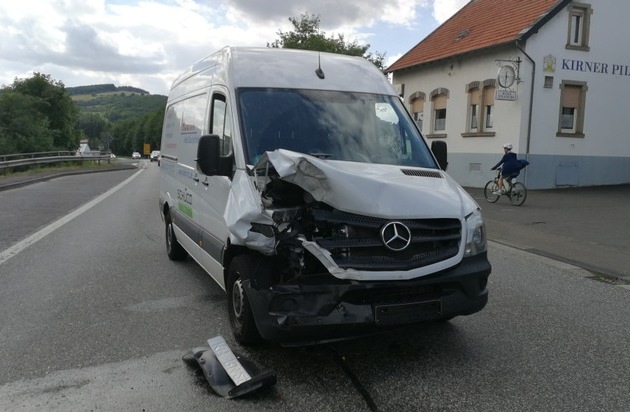 Am 22.06.2018 gegen 16.00 Uhr befuhr der 31jährige Fahrer eines Mercedes Sprinter die B41 vom Kreisel Simmertal kommend in Fahrtrichtung Martinstein, als der davor fahrende 62jährige Fahrer eines PKW Opel Astra nach links abbiegen wollte. Der Fahrer des Opels musste dabei aufgrund Gegenverkehrs anhalten. Der Fahrer des Sprinters fuhr aufgrund zu geringen Sicherheitsabstandes auf den stehenden PKW auf. An beiden Fahrzeugen entstand erheblicher Sachschaden in Höhe von insgesamt etwa 20.000 Euro. Beide Fahrzeuge waren nicht mehr fahrbereit und mussten abgeschleppt werden. Durch den Aufprall wurde lediglich der Unfallverursacher leicht verletzt. Er wurde verwarnt.