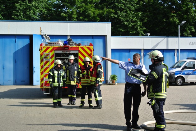 So sah das Szenario einer gemeinsamen Brandübung der Polizeiautobahnstation Gau-Bickelheim mit den Feuerwehren Gau-Bickelheim, Wallertheim und Wohnsheim aus, die unter aufmerksamer Beobachtung der Dienststellenleitung, der jeweiligen Wehrleitungen und Verbandsbürgermeister Rocker stattfand. Nachdem zunächst mit einer Nebelmaschine als Brandsimulation das Gebäude verraucht wurde, verließen nach der Meldung "es brennt" alle Beamten im Wachbereich auf Anweisung des Wachhabenden geordnet die Wache. Die Beamten im Obergeschoss allerdings, ein Polizist im Untergeschoß und eine Person in der polizeilichen Gewahrsamszelle konnten aufgrund der Rauchentwicklung den Treppenbereich nicht mehr nutzen. Durch die inzwischen alarmierten Feuerwehren, die nach wenigen Minuten eingetroffen waren, wurden die Beamten aus dem ersten Stock über eine Leiter durch ein Notausstiegsfenster gerettet. Die Person im Untergeschoß konnte ebenfalls durch einen Notausstieg das Gebäude verlassen. Als "Gast" in der Zelle wurde eine Übungspuppe eingesetzt. Sie wurde wegen angenommener Ohnmacht mit einer Trage aus dem Gebäude verbracht. Da der Dienstbetrieb natürlich auch in einer solchen Situation weitergehen musste, wurde im Hof der Dienststelle unter Nutzung eines Mehrzweckfahrzeuges eine provisorische Wache eingerichtet. So blieb die Dienststelle mit Unterstützung der übergeordneten Leitstelle weiter einsatzbereit. Nach der Evakuierung aller bekannten Personen aus dem Gebäude und der parallel simulierten Brandlöschung überprüfen die Kräfte der Feuerwehren mit Atemschutzgeräten alle Räume nach weiteren Menschen und stellten sicher, dass sich niemand mehr im Gebäude befindet. So konnte kurz vor den Mittagsstunden das Gebäude mittels entsprechenden Ventilatoren das Gebäude belüftet und das Übungsende verkündet werden.