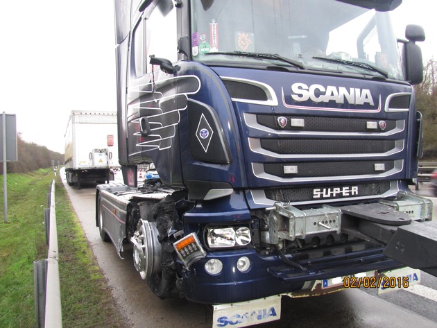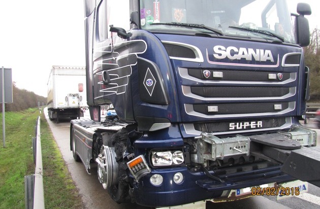 POL-VDMZ: Verkehrsunfall mit vier beteiligten LKW - verlorenes Metallteil löst Kettenreaktion aus