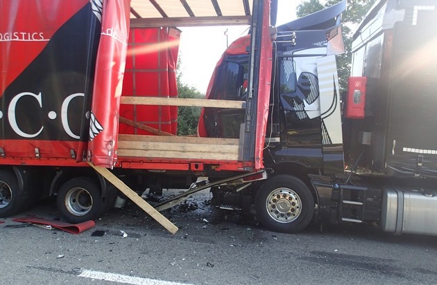 Am heutigen Morgen kam es gegen 09:50 Uhr zu einem schweren LKW-Unfall auf der A 61 Richtung Koblenz bei Gau-Bickelheim. Ein 32-jähriger LKW-Fahrer aus Sachsen-Anhalt musste verkehrsbedingt seinen LKW bis zum Stillstand abbremsen. Ein 33-jähriger LKW-Fahrer aus Rheinland-Pfalz erkannt die Situation zu spät und fuhr fast ungebremst auf den stehenden LKW auf. Beide Fahrer wurden leichtverletzt und kamen vorsorglich in ein Krankenhaus. Es entstand ein Sachschaden von ca. 80.000EUR. Im Rahmen der Aufräumarbeiten kam es zu erheblichen Behinderungen für den Verkehr, die staulänge betrug zwischenzeitlich 10 km.