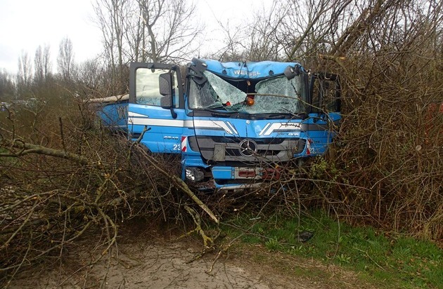 Am 21.03.2017, gegen 08.30 Uhr, durchbrach ein mit Schotter beladender Sattelzug auf der A 63 in Fahrtrichtung Mainz, kurz vor der Anschlussstelle Erbes-Büdesheim, die Leitplanken und kam erst in der Böschung neben der Autobahn zum Stehen. Der 56-jährige Fahrer war infolge einer plötzlichen Übelkeit von der Fahrbahn abgekommen. Dabei verletzte er sich glücklicherweise nur leicht, wie man im Krankenhaus feststellen konnte. Der am Sattelzug entstandene Sachschaden wird auf ca. 90.000 Euro geschätzt. Andere Verkehrsteilnehmer kamen nicht zu Schaden.