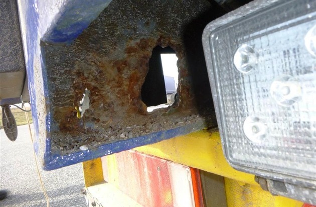 Gestern kontrollierten Polizeibeamte des Schwerverkehrstrupps der Verkehrsdirektion Mainz auf der BAB61 einen bulgarischen Lastzug. Der erste Eindruck war, dass der 19 Jahre alte Lkw und der 28 Jahre alte Anhänger in einen sehr schlechten technischen Zustand waren. An vielen Stellen war der Hauptrahmen durchgerostet und in sich verbogen. Ein technischer Gutachter stellte mehr als 100, zum Großteil gravierende, technische Mängel an dem Gespann fest. Diese waren überwiegend an den Baugruppen Bremsanlage, Rahmen, Fahrgestell und Aufbau. Dies ist besonders erschreckend, da das Gespann bis an das Maximum ausgeladen war. Nach viereinhalb Stunden gründlicher Verkehrskontrolle stand das Ergebnis fest. Beide Fahrzeuge sind Verkehrsunsicher. Laut des technischen Gutachters ist eine Reparatur unwirtschaftlich. Es wurde eine Verschrottung vor Ort angeregt. Dem Gespann wurde die Weiterfahrt untersagt und es wurde zur Sicherheit angekettet. Den Fahrer, aber auch den Halter, erwartet jeweils ein Bußgeld von mehreren hundert Euro.