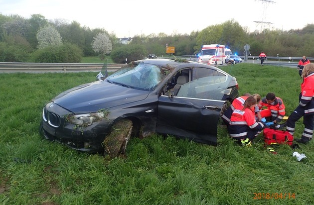 Am Samstag, 14.04.2018, gegen 19:10 Uhr meldet ein aufmerksamer Verkehrsteilnehmer einen Schlangenlinien fahrenden PKW auf der BAB 60 in Fahrtrichtung Darmstadt zwischen den Anschlussstellen Ingelheim-West und Ingelheim-Ost. Der SUV der Marke BMW brauche mehrere Fahrspuren und würde immer wieder ohne ersichtlichen Grund mit wechselnden Geschwindigkeiten fahren. Im Rahmen einer Fahndung kann das Fahrzeug in Höhe der Anschlussstelle Heidesheim festgestellt werden. Der BMW soll am Autobahndreieck Mainz aus dem Verkehr gezogen werden, um ihn einer Verkehrskontrolle zu unterziehen. Im weiteren Verlauf missachtet der Fahrer des SUV die Anhaltesignale der Polizei und flüchtet weiter auf der BAB 60 in Fahrtrichtung Darmstadt. Kurz darauf gehen bei der Polizei Notrufe über einen verunfallten BMW an der Anschlussstelle Mainz-Lerchenberg ein. Hierbei sei ein Fahrzeug auf die Leitplanke gefahren, habe sich anschließend überschlagen und liege jetzt im Grünstreifen. Beim Eintreffen der Streifenbesatzung stellt diese fest, dass es sich bei dem Unfallfahrzeug um den zuvor flüchtigen BMW handelt. Schnell stellt sich heraus, warum der Fahrer geflohen ist. Während der Unfallaufnahme kann bei ihm starker Atemalkoholgeruch wahrgenommen werden. Den freiwilligen Atemalkoholtest verweigert der 32-jährige Mainzer. Nach Rücksprache mit der Staatsanwaltschaft Mainz wird die Blutprobe angeordnet und der Führerschein beschlagnahmt. Später kann bei dem Flüchtenden eine Alkoholisierung von etwa 3,0 Promille festgestellt werden. In Folge des Verkehrsunfalls erleidet der Fahrer, der sich alleine im Fahrzeug befand, leichte Verletzungen. Am Fahrzeug des Mainzers entsteht Totalschaden. Weiterhin werden zehn Elemente der Leitplanke und mehrere Verkehrsschilder beschädigt. Der Gesamtschaden beläuft sich auf ca. 15.000EUR.