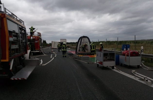 POL-VDMZ: LKW-Anhänger auf der A63 Höhe Wörrstadt in Fahrtrichtung Mainz umgekippt. Autobahn gesperrt
