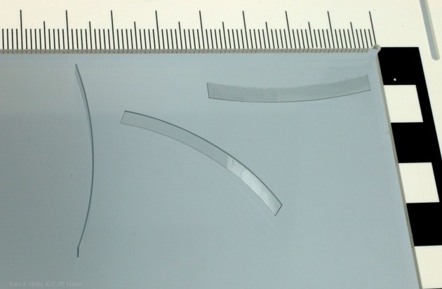Am Viktorstift, 21.07.2015, 17:05 Uhr: Am Dienstagnachmittag entdeckte eine Nachbarin den Einbruch in das Anwesen von abwesenden Nachbarn und informierte die Polizei. Diese stellte ein aufgebrochenes Fenster im Souterrain und durchwühlte Räume im Hausinneren fest. Bei der Tatortaufnahme wurden durchsichtige Plastikteilchen (siehe Foto) im Flur des Hauses gefunden. Es ist davon auszugehen, dass der oder die unbekannten Täter das Haus im Vorfeld beobachtet und markiert hatten.