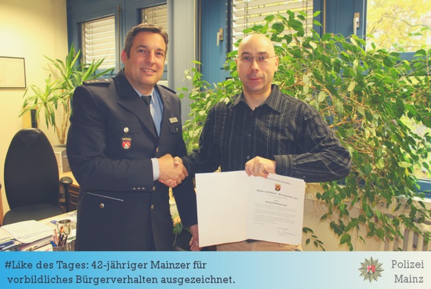 POL-PPMZ: 42-jähriger Mainzer für vorbildliches Bürgerverhalten geehrt