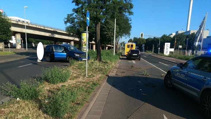 Ein 49-jähriger Mainzer befährt die Rheinallee in Richtung Innenstadt auf der rechten von zwei Fahrstreifen. Nach einer Rechtskurve fährt er ohne Fremdweinwirkung nach links gegen einen Baum auf der Mittelinsel. Der Pkw war nicht mehr fahrbereit und musste abgeschleppt. Der 49-jährige wurde bei dem Unfall verletzt (Nasenbluten, vermutlich Hals-Wirbel-Schleudertrauma und es besteht der Verdacht auf eine Handfraktur). Er wurde daraufhin in ein Mainzer Krankenhaus eingeliefert. Er gab gegenüber der Polizei an, dass die tief stehende Sonne ihn geblendet hätte. Bei der Unfallaufnahme wurde festgestellt, dass er die ihm vorgeschrieben Sehhilfe nicht getragen hat. Nach Rücksprache mit der Staatsanwaltschaft Mainz wird ihm der Führerschein sichergestellt, da der Verdacht der Gefährdung des Straßenverkehrs aufgrund der Nichteinhaltung der Auflage (Tragen einer Sehhilfe) besteht. Die Fahrbahn der Rheinallee war auf beiden Seiten auf einem Fahrstreifen für 1,5 Stunden gesperrt. Am Pkw entstand ein Schaden von ca. 6.000 EUR.