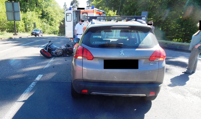 Am Freitag (26.05.2017) gegen 16:40 Uhr kam es zu einem Unfall zwischen einem Motorradfahrer und einem PKW auf der Wiedhöhenkreuzung bei Hausen Weißfeld. Der Kradfahrer befuhr die L254 in Richtung Mahlberg, während die PKW-Fahrerin die vorfahrtberechtigte L 257 in Richtung Bad Hönningen befuhr. Im Kreuzungsbereich kam es zum Zusammenstoß, wobei sich der Kradfahrer schwer verletzte. Hier war der Einsatz des Rettungshubschraubers zum Abtransport des Verletzten erforderlich.
