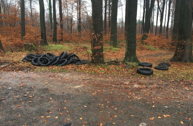Im Zeitraum von Freitag, 24.11.2017, 17:30 Uhr bis Samstag, 25.11.2017, 10:00 Uhr, wurden auf einem Wirtschaftsweg zwischen Hardert und Bonefeld ca. 40 Reifen (Motorradreifen ohne Felgen) illegal entsorgt. Hinweise bitte an die Polizei Straßenhaus, 02634-9520 oder per Mail an pistrassenhaus@polizei.rlp.de (Foto anbei).
