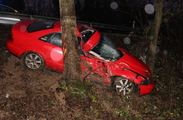 ***Zeugen gesucht*** Am Sonntag, dem 13.12.2015, um 16:15 Uhr, befuhr ein 30-jähriger Geschädigter aus der VG Diez, mit seinem Pkw, die L 318 aus Birlenbach kommend in Fahrtrichtung Diez. In einer langgezogenen Rechtskurve kam ihm, eigenen Angaben zufolge, ein dunkler Pkw auf seiner Fahrspur entgegen. Der Geschädigte musste diesem Pkw ausweichen, um einen Zusammenstoß zu vermeiden. Hierdurch kam er rechtsseitig von der Fahrbahn ab und touchierte zunächst einen Leitpfosten. Im weiteren Verlauf geriet er mit der linken Fahrzeugseite auf eine beginnende Schutzplanke, schleifte diese etwa 20 Meter entlang, bevor der Pkw nach rechts in einen Steilhang abrutschte und dort mit der Fahrzeugseite gegen einen Baum stieß. Der Pkw des Geschädigten erlitt einen wirtschaftlichen Totalschaden. Der Unfallverursacher entfernte sich unerlaubt von der Unfallstelle. Es soll sich um einen dunklen Pkw gehandelt haben.