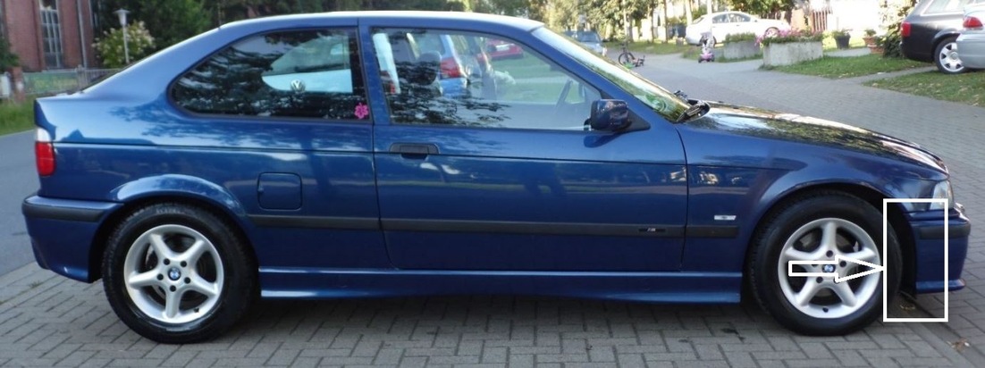 PKW fährt Radfahrer an und flüchtet anschließend ***Zeugen gesucht*** Am Sonntag, dem 16.10.2016 gegen 14:15 Uhr befuhr ein 51-jähriger Fahrradfahrer aus dem Kreis Neuwied die K 127 von Wittgert in Richtung Ransbach-Baumbach. Ein bisher unbekannter PKW-Fahrer fuhr hinter dem Fahrradfahrer in gleiche Richtung. Aus bisher unbekannter Ursache stieß der PKW mit der rechten Fahrzeugseite gegen das Hinterrad des Fahrradfahrers. Der Fahrradfahrer stürzte dadurch und blieb schwerverletzt im Straßengraben liegen. Der Verursacher kümmerte sich nicht um den Radfahrer und flüchtete von der Unfallstelle. Andere Verkehrsteilnehmer fanden den Verletzten und leisteten Erste Hilfe. Am Fahrrad und an aufgefunden Kunststoffteilen wurde blaue Farbe gesichert. Gefahndet wird daher nach einem blauen PKW mit vermutlichem Schaden an der Frontschürze vorne rechts. Nachtrag: 27.10.2016 Die Polizei bittet die Bevölkerung um Mithilfe Verkehrsunfall mit Flucht, Rennradfahrer schwerverletzt ***Zeugen gesucht** Wie bereits berichtet, ereignete sich am Sonntagnachmittag, 16.10.2016 ein Verkehrsunfall auf der K 127, zwischen den Ortschaften Wittgert und Ransbach-Baumbach. Dabei wurde ein 51-jähriger Rennradfahrer von einem PKW angefahren, als dieser ihn überholte. Der Rennradfahrer wurde in den Straßengraben geschleudert und schwer verletzt. Der PKW-Fahrer fuhr weiter, ohne sich um den Verletzten zu kümmern. Der Rennradfahrer erlitt mehrere Frakturen. Durch Zeugenaussagen konnte inzwischen ermittelt werden, dass es sich beim Verursacherfahrzeug um einen älteren PKW BMW 3er- Compact mit dunkelblauer Farbe, Baureihe " BMW E 36, Fertigungszeitraum 1994 - 1998, handeln müsste. An der Unfallstelle wurden dunkelblaue Fahrzeugteile gefunden, die vom Verursacherfahrzeug stammen. Dabei handelt es sich um Teile einer Frontstoßstange aus Kunststoff vom Radkastenausschnitt vorne rechts. Das beigefügte Foto ist ein Vergleichsfahrzeug, die Stelle der Beschädigung ist auf dem Foto markiert. Spuren am Unfallort und Zeugenaussagen lassen auf die Farbe wie auf dem Vergleichsfoto abgebildet schließen. POLIZEIWACHE HÖHR-GRENZHAUSEN - Telefon 02624/9402-0 - E-Mail: pwhoehrgrenzhausen@polizei.rlp.de ********************************************************************* ************************************************************