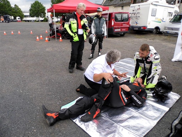 Am gestrigen Sonntag führte die Polizeidirektion Montabaur unter der Federführung der Zweiradkontrollgruppe einen Präventionstag in Montabaur auf der Eichwiese durch. An dem Aktionstag beteiligten sich neben verchiedenen polizeilichen Organisationen auch der DRK-Kreisverband Westerwald, die Verkehrswacht, Deutscher Verkehrssicherheitsrat und zwei örtliche Anbieter von Sicherheitstrainings. Trotz leichter Regenschauer nahmen circa 250 interessierte Motorradfahrer die Angebote wahr und informierten sich an den verschiedenen Ständen. Besonders begehrt waren die Fahrsimulatoren und die Möglichkeit, eine Helmabnahme unter fachkundiger Anleitung durchzuführen. In den Bikergesprächen wurden Informationen über Sicherheitsausrüstungen, technische Veränderungen und deren möglichen Rechtsfolgen weitergegeben. Nicht zuletzt wurden die Biker für die Gefahren beim Motorradfahren sensibilisiert. Nach dem Bikergottesdienst und einer anschließenden Segnung nahmen circa 25 Biker an der Ausfahrt, angeboten von der Verkehrswacht, durch das Gelbachtal teil.