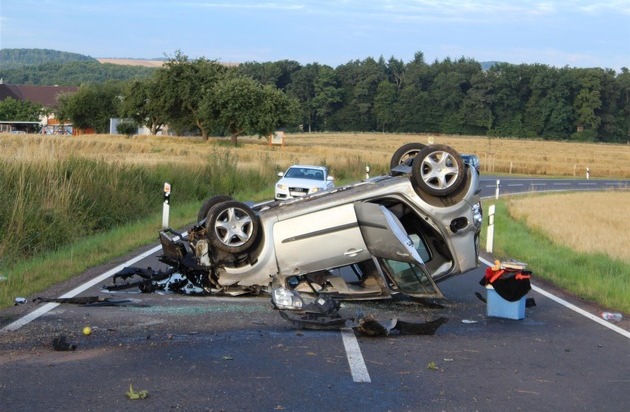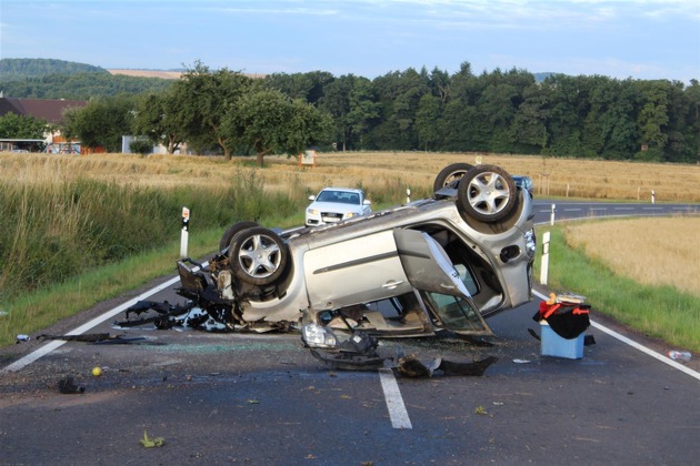 Gegen 06 Uhr am Dienstagmorgen (18.07.2017) wurde durch Verkehrsteilnehmer ein Unfall auf der Kreisstraße 37 gemeldet. Eine Frau, die von Steinsberg kommend in Richtung der L 318 fuhr, geriet bei dem Versuch einem Fuchs auszuweichen in den Gegenverkehr. Der Fahrer eines entgegenkommenden Pkw musste, um einen Zusammenprall zu vermeiden, ausweichen. Dabei geriet er auf den unbefestigten Seitenstreifen und überschlug sich in Folge mit seinem Fahrzeug. Zur Untersuchung seiner Verletzungen wurde er durch einen Krankenwagen wegen entsprechender Untersuchungen in eine Klinik verbracht. Am Pkw entstand Totalschaden. Da auch Betriebsstoffe ausliefen, wurde die Straßenmeisterei verständigt. Die Verursacherin blieb unverletzt.
