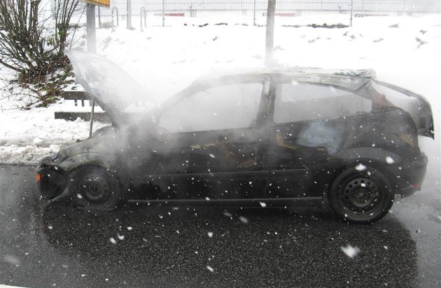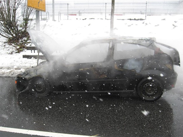 Am Fr., 15.12.2017 gegen 12.30 Uhr befuhr eine 20 Jahre alte Pkw-Fahrerin aus Hessen mit ihrem Fahrzeug die Bundesstraße B 54 in der Ortslage Rennerod in Richtung Limburg. Kurz vor dem dortigen Kreisverkehr nahm der Pkw laut Fahrerin plötzlich kein Gas mehr an und rollte aus. Unmittelbar danach drang bereits Qualm aus dem Motorraum. Das dort entstandene Feuer griff schnell auf den Fahrzeuginnenraum über. Die Fahrerin konnte das Auto noch gefahrlos verlassen. Das Fahrzeug brannte jedoch vollständig aus. Die freiwillige Feuerwehr Rennerod war mit 9 Kräften im Einsatz und löschte das Wrack ab. Die Schadenshöhe wird auf ca. 1.500 Euro geschätzt. Die Brandursache ist derzeit noch ungeklärt, ein technischer Defekt steht zu vermuten. Für die Dauer von der Lösch- und Bergungsarbeiten musste die Bundesstraße teilweise gesperrt werden. Eine örtliche Umleitung war eingerichtet.