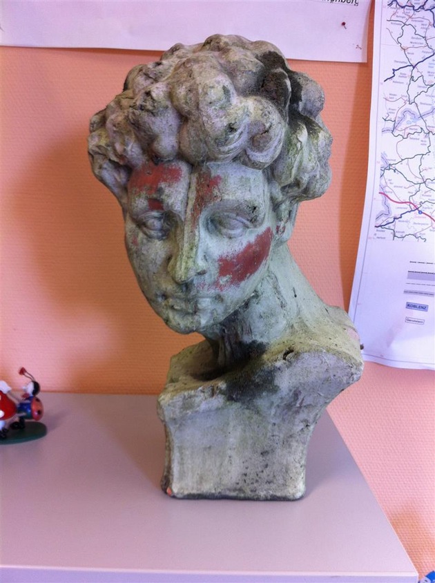 In der Zeit vom 24.-29.08.2016 hatte sich ein bisher unbekanntes Pärchen in einem Hotel in Cochem eingemietet. Anschließend haben sie das Hotel verlassen, ohne die Rechnung zu begleichen. Es handelte sich angeblich um ein Paar aus den Niederlanden. Im Hotelzimmer blieb eine Steinbüste zurück, deren Eigentümer nun gesucht wird. Hinweise an die Polizei in Cochem, Tel. 02671-9840.
