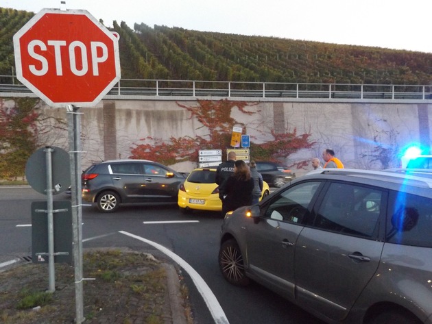 Am Montagmorgen, gegen 07.30 Uhr, ereignete sich an der Einmündung B 267 zur Rotweinstraße ein Verkehrsunfall. Die Bilanz waren zwei leichtverletzte Personen und Sachschaden in Höhe von 15.000 EUR. Eine Pkw- Fahrerin aus dem Kreis Euskirchen wollte von der BAB 573 kommend an der Einmündung nach links in Richtung Ahrweiler auf die Rotweinstraße auffahren. Hierbei missachtete die Vorfahrt des von links kommenden Pkw- Fahrer aus dem Stadtgebiet. Durch die Kollision erlitten beide Beteiligte leichte Verletzungen. Beide Fahrzeuge waren nach dem Zusammenstoß nicht mehr fahrbereit und mussten eingeschleppt werden. Der morgendliche Berufsverkehr wurde erheblich beeinträchtigt.