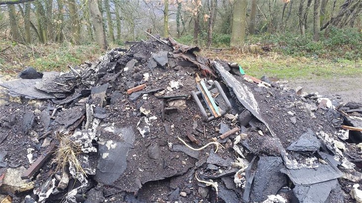 Umweltdelikt: Dernau/Esch: Am Freitagmittag wurde eine illegale Abfallbeseitigung im Bereich Dernau/Grafschaft-Esch gemeldet. In der Verlängerung der Bachstraße in Dernau konnte durch die Kollegen eine geschätzte Bauschuttmenge von ca. 10-15 m³ Bauschutt in Waldrandlage auf einem unbefestigten Wanderparkplatz festgestellt werden. Bei dem Abfall handelt es sich um Reste von Teerbahnen, Dämmmaterial in Form von Styroporresten und Teppichresten. Weiterhin befand sich vor Ort eine größere, nicht näher verifizierbare Menge an gemischtem Bauschutt.