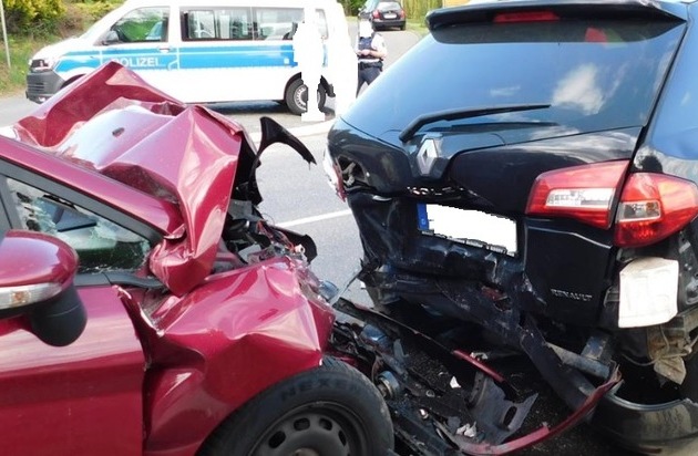 Am 25.04.2018, gegen 16:30 h kam es auf der B 258 / Einmündung / Hauptstraße zu einem Auffahrunfall mit Personenschaden. Eine 55-jährige Frau aus der VG Vordereifel, befuhr mit ihrem Pkw, Renault, die Bundesstraße in Fahrtrichtung Mayen, gefolgt von einem Pkw, Ford, der von einem 32-jährigen Fahrzeugführer aus der VG Kaisersesch geführt wurde. Die Fahrerin des Renault musste ihr Fahrzeug abbremsen, da ein vor ihr fahrender, hellblauer Kleinwagen plötzlich und verbotswidrig von der B 256, nach links in die Hauptstraße abbog. An dieser Stelle ist das Linksabbiegen durch eine eindeutige Verkehrsbeschilderung verboten. Der Fahrer des Ford fuhr auf den Pkw Renault auf. Beim Unfallhergang wurde die Fahrzeugführerin leicht verletzt und durch das DRK ins Krankenhaus Mayen gebracht. Beide Fahrzeuge waren erheblich beschädigt und mussten abgeschleppt werden. Vor Ort waren 12 Feuerwehrleute der Feuerwehren Kürrenberg und Mayen im Einsatz. Die Polizei bittet Zeugen, die Hinweise zu dem blauen Kleinwagen geben können, sich zeitnah zu melden.