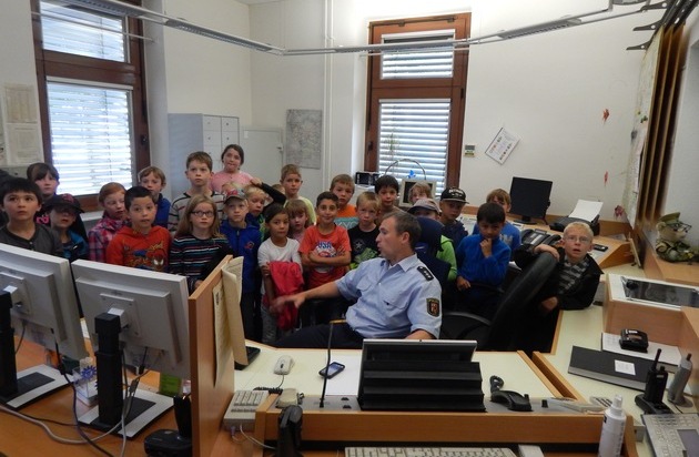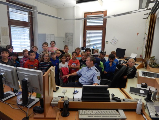 27 Kinder der Ferienfreizeit der Arbeiterwohlfahrt, die zurzeit ihre Ferien in dem Ferienlager auf Hof Aspich in Lahnstein verbringen, besuchten am vergangenen Dienstagvormittag die Polizeidienststelle in Lahnstein. Dort wurden die Kinder im Alter zwischen 8 - 10 Jahren von Polizeioberkommissar Karl-Heinz Weidung empfangen. Herr Weidung ist bei der Polizei Lahnstein hauptsächlich für die Jugendverkehrsschule zuständig und bringt den Grundschülern aus Lahnstein, Braubach und Dachsenhausen das "Einmaleins" der sicheren Teilnahme am Straßenverkehr bei. So erklärte Herr Weidung den Kindern zunächst, was alles zu einem verkehrssicheren Fahrrad gehört, wie z.B. ein funktionierendes Licht und Rücklicht, sowie funktionierende Bremsen. Außerdem erläuterte er ihnen, dass zum Fahrradfahren unbedingt die Benutzung eines Schutzhelms gehört. Anschließend zeigte er den Kindern die Polizeiautos und besuchte mit ihnen die Polizeiwache, wo er auch die eine oder andere Frage der Kinder gern beantwortete. Unbedingt sehen wollten die 8 - 10 Jährigen den Gewahrsam der Dienststelle, also das "Gefängnis". Hier erklärte POK Weidung mit altersgerechten Worten, warum man einen Menschen manchmal dort einsperren muss. Sichtlich beeindruckt von dem Erlebten verließen die Kinder gegen Mittag die Polizeidienststelle.