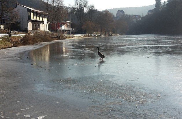 Die anhaltend unter dem Gefrierpunkt liegenden Temperaturen der letzten Tage haben nicht nur die Berge und Täler des Rhein-Lahn-Kreises in ein winterliches Antlitz gehüllt. Auch die Lahn selbst spiegelt, mit inzwischen weitläufigen Eisflächen, die Schönheit der Jahreszeit wieder. Eben jene Flächen sind es jedoch, die von überwiegend jungen Spaziergängern betreten werden. So verlockend und scheinbar sicher diese Eisflächen auch wirken, so groß ist auch die Gefahr, die von ihnen ausgeht. Nur in ganz wenigen Bereichen ist die Eisschicht derart dick, dass ein bedenkenloses Betreten möglich wird. Die Polizei weist daher ausdrücklich darauf hin, dass die Lahn nicht begangen werden sollte. Zu groß ist die Gefahr eines Eisbruchs und dem damit verbundenen Einsinken in den kalten Fluss.